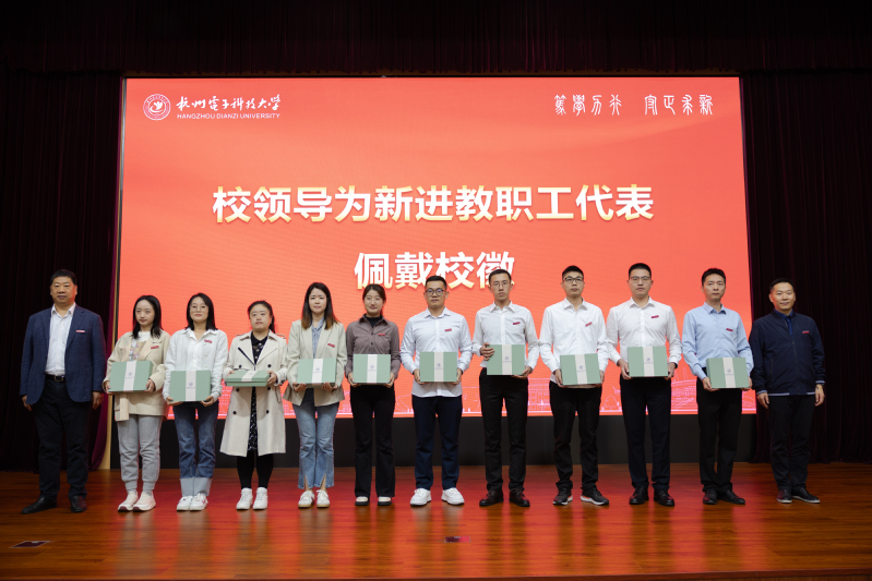 校党委书记吴卿,校长陈积明,副校长马国进,校党委委员、宣传部部长陈云为新进教职工代表佩戴校徽并赠送纪念品。新进教职工代表通过饱含深情的诗朗诵《入职誓言》,表达了对教育事业的美好憧憬和共同书写杭电教育新篇章的决心。优秀教师代表赵文生教授分享了个人在杭电的成长故事,激励新教师潜心科研、扎根基层,做有组织、高融合的科研工作。团委余依城老师带领大家学唱《杭电之歌》。开班仪式结束后,新进教职工在讲解员的引领下分批参观了校史馆。